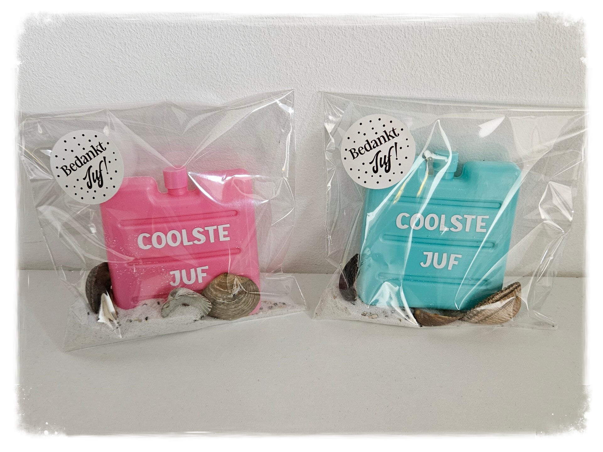 Leuk als cadeautje aan het einde van het jaar of met dag van de leerkracht. Een koelelement is natuurlijk goed te gebruiken in de zomervakantie. Maar ook super leuk als de juf of meester jarig is in de zomerperiode.